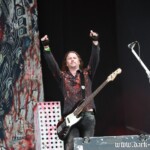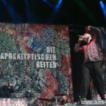 Kein Wunder also, dass ebenso wie das Bier auch massenweise das kostenlose Trinkwasser in die Flaschen des Metalbags floss. Die Veranstalter hatten vorsorglich die Anzahl der Entnahmestellen erhöht. Das war auch bitter nötig, waren die Kehlen der meisten Metalfans durch Staub und Mitsingen doch konstant trocken.
