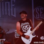 Kein Wunder also, dass ebenso wie das Bier auch massenweise das kostenlose Trinkwasser in die Flaschen des Metalbags floss. Die Veranstalter hatten vorsorglich die Anzahl der Entnahmestellen erhöht. Das war auch bitter nötig, waren die Kehlen der meisten Metalfans durch Staub und Mitsingen doch konstant trocken.